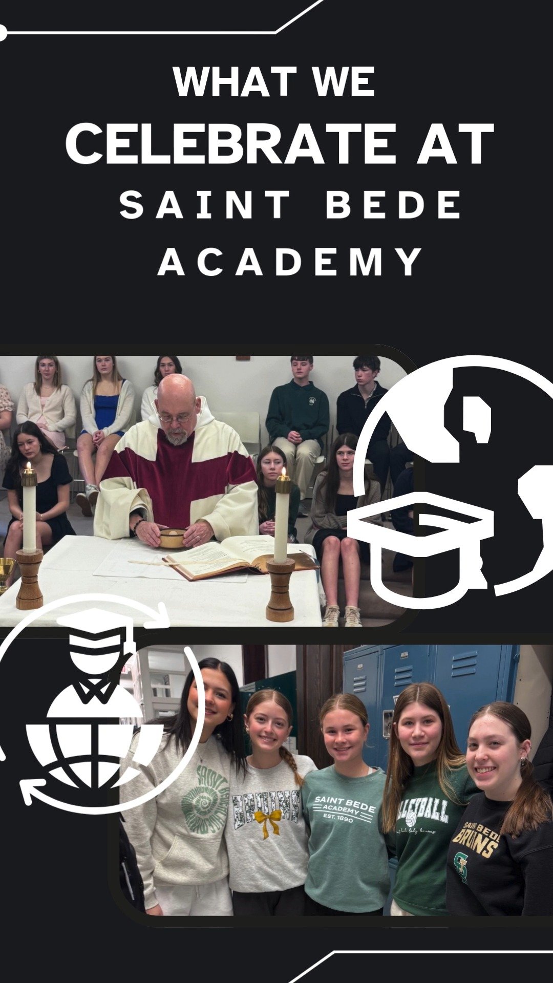 The spirit and traditions of St. Bede are very important to the students, staff and alumni! The best thing about being a St. Bede student is the family-like environment. Everyone knows everyone, and everyone talks to everyone. We act like a family, love like a family, gather like a family and learn WITH family.